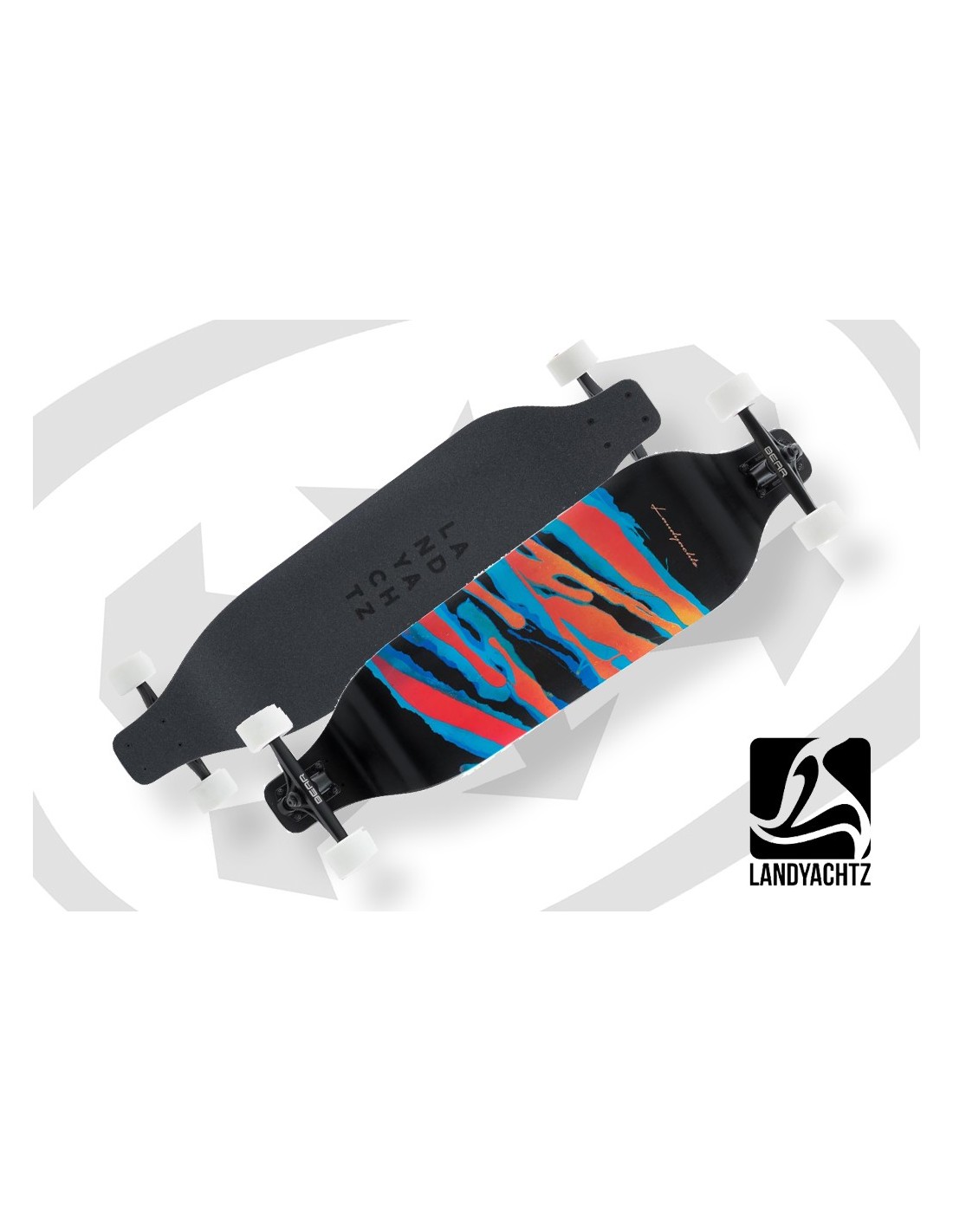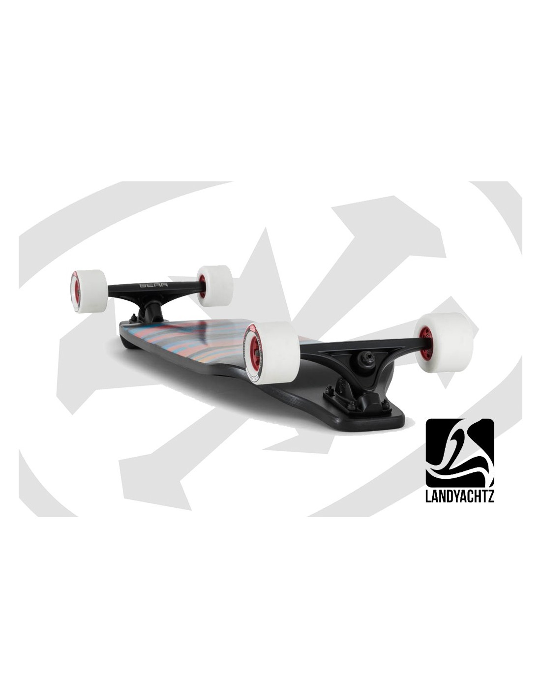 The Evo is a classic example of downhill board design and the concept continues to be effective to this day. A lowered platform and directional wedging work to give you a super stable ride and front-loaded steering that gives you a ton of control while cornering hard. The Evo 36 is the more compact of our two Evo shapes, and at 36″ long by 9.5″ wide it offers more grip in the corners and a much more agile, responsive ride than the 40. Pressed with 9 plies of Canadian maple, the Evo 36 offers a stiff platform for downhill performance. New this year, the Evo comes with 155mm Gen 6 Bear Grizzly trucks to give you a bit more of a defined hookup from drifts and more control over the steering. The Evo rolls on 76mm 80a Monster Hawgs for lots of roll speed and grip as well as predictable drifts.