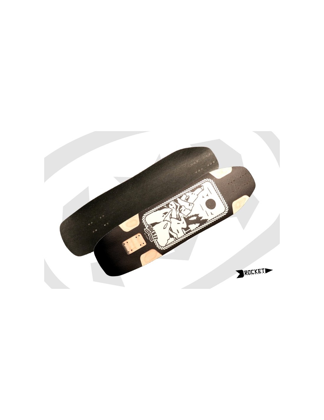 The Rocket DH Scout is based on the shape of the Classic Scout. It is speed stiff and has sharp edges it so you have more grip in corners. It features a asymmetrical rocker which is placed slightly towards the front. The tail has a short convex part behind the back truck to anatomically adapts to your feet according to Rocket, which makes the tail super comfortable to stand on and creates a nice pocket for your stand up slides. The wheel-flares give you reference points for your front foot without limiting your stance and the front truck is wedged 3° while the back truck stays leveled out. The DH Scout is for people who like to ride fast on short wheelbases, but it is also suitable as a city or pump track board for heavier riders. Length: 32.5” / 82.5 cmWidth: 9” / 23 cmWheelbase: 19.3” – 21” / 49 – 53.5 cmConcave: 0.55″ / 14 mmMaterial: SFI-certified Canadian maple, Natural flax fiber, Embossed ABS topsheet