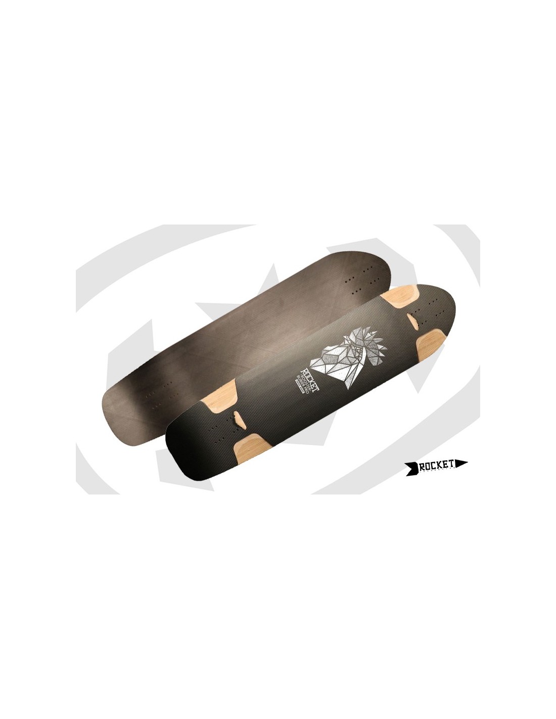 Get ready for your next downhill adventure with the Rocket Rooster David Bubier Longboard Deck! Made in collaboration with David Bubier who is an exceptional freerider. The Rooster has a symmetrical standing platform with 0.25” micro drops. A new elliptical concave combines the advantages of a radial and a tub concave and ensures a comfortable foot placement. A full size kick tail with a convex area just after the kink. This provides more comfort and grip on slides over the tail and blunt slides. Thanks to a new hybrid construction with maple and a hollow bamboo core combined with carbon fibers, the Rooster weighs noticeably less than comparable boards of this size. Of course, it is still speed stiff and durable! SpecsLength: 99.1cm / 39"