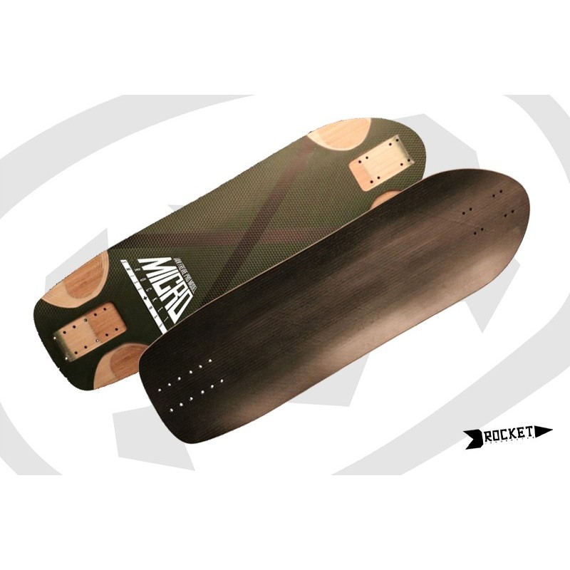 The Rocket Micro Ian Freire Pro is the 2021 revised version of the, original pro model from 2017. Since Ian Freire is both a Freerider and Downhiller Rocket released two versions. The Micro is similar to the Macro (the bigger Ian Pro) but all the features are "compressed" into a smaller size. It has an hollow core, and gets its strength from carbon mixed with flax and glass fiber. The tail is made longer by moving the mounting holes forward and has adjusted width and concave. It has a symmetrical concave which is made steeper which locks you in with the the combination of rocker. Length: 30.5” / 77.5 cm