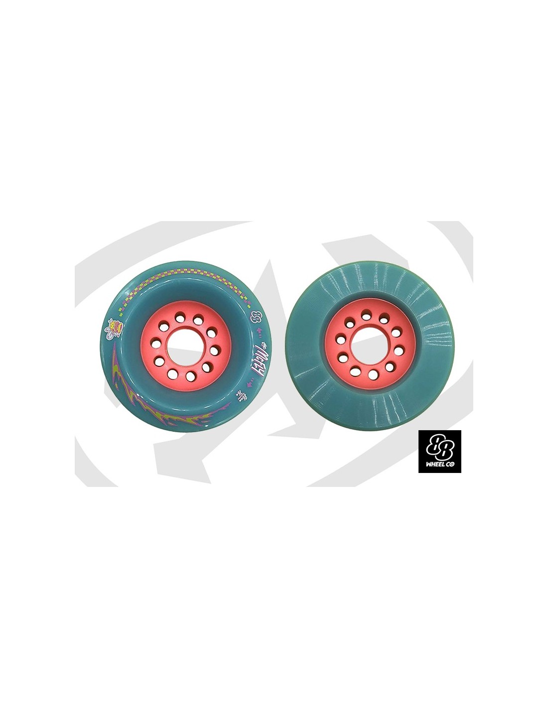 88 Wheels Mcfly 86mm 76A Longboard Wheels The McFly is large and in charge! Smooth and on the move! Fast and built to last! With its 86mm diameter and 76a soft, high rebound urethane, the McFly is an ideal wheel for drop through cruisers and distance boards, supplying superior rolling speed and plushness that will have riders feeling one with the road. These wheels feature an o ff set core and thick lips with a small radiused edge, smoothing out slide characteristics compared to similarly sized wheels, for the ultimate commuting and cruising experience. Roll over everything in your path! This special formula is chunk and bubble free. Specs :Diameter: 86mmDurometer: 76AWidth:55mmContact patch:50mmCore Position:OffsetLip:RoundSurface:Smooth