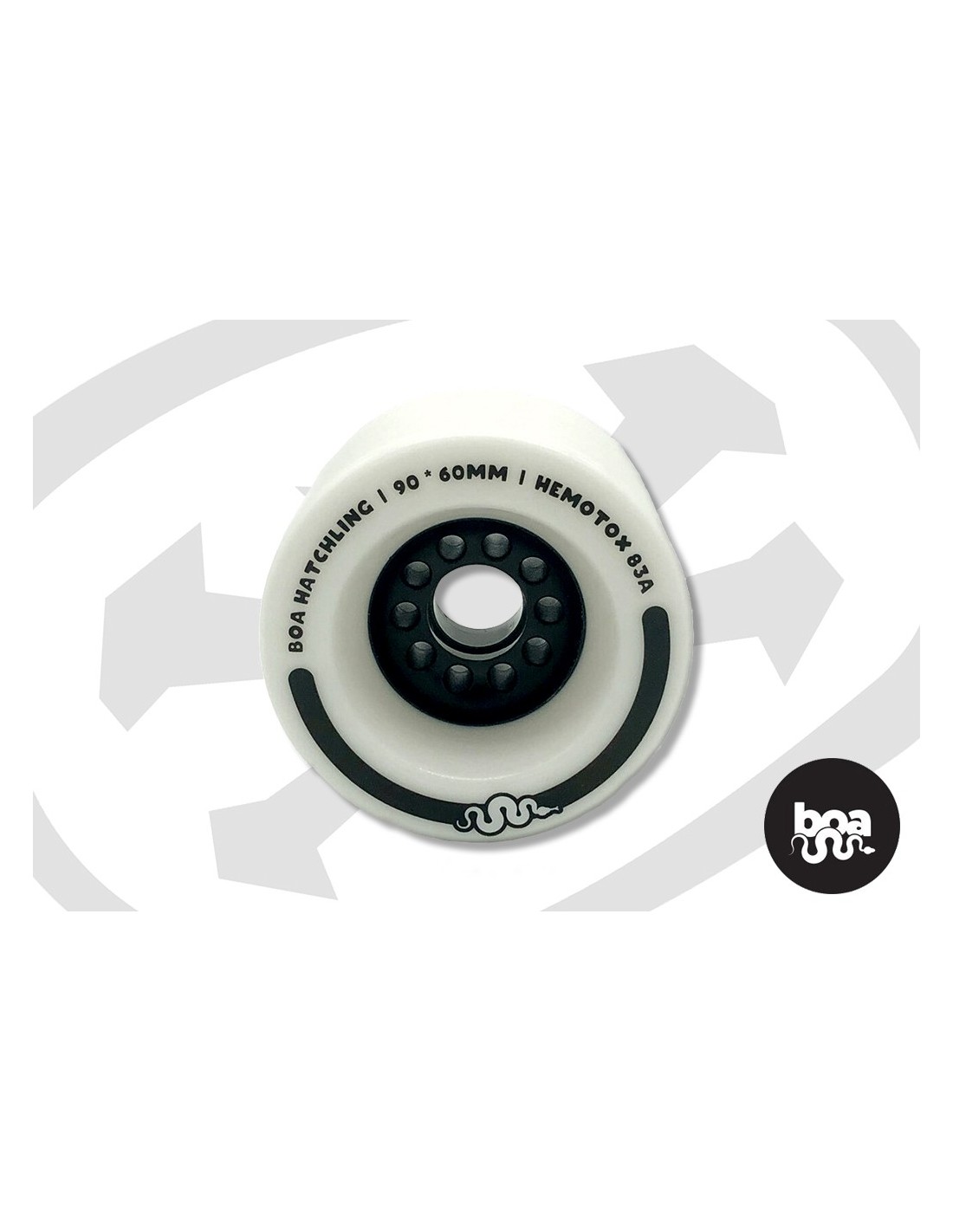The Boa Hatchlings are the perfect complement for your ride. Now improved using our all new V2 Hemotox™ formula, these wheels feature excellent resistance against chunking, ensuring they can handle even the most unforgiving environments. The Hemotox™ formula provides a squishy ride to absorb shocks and vibrations. Don’t let the 83a durometer fool you, these wheels ride like a soft and squishy 78a wheel. Our new Boa Core provides extra grip to the urethane for high speed applications, and features a precision bearing seat, keeping your wheels running true, and running 10g lighter than our V1 wheels.