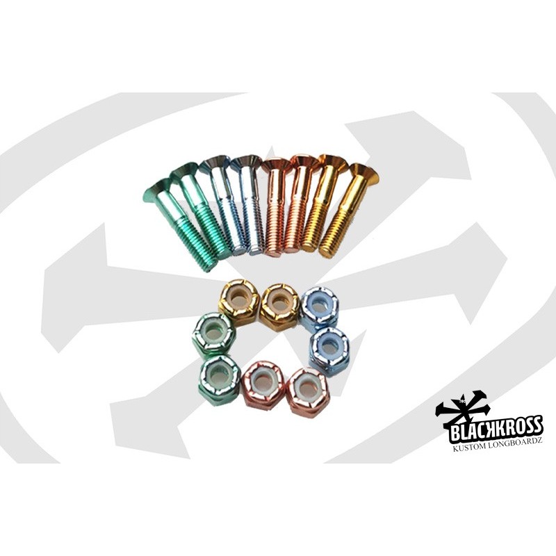 A set of 1" nuts and bolts for your skateboard. The bolts are anodized in 4 different colors.