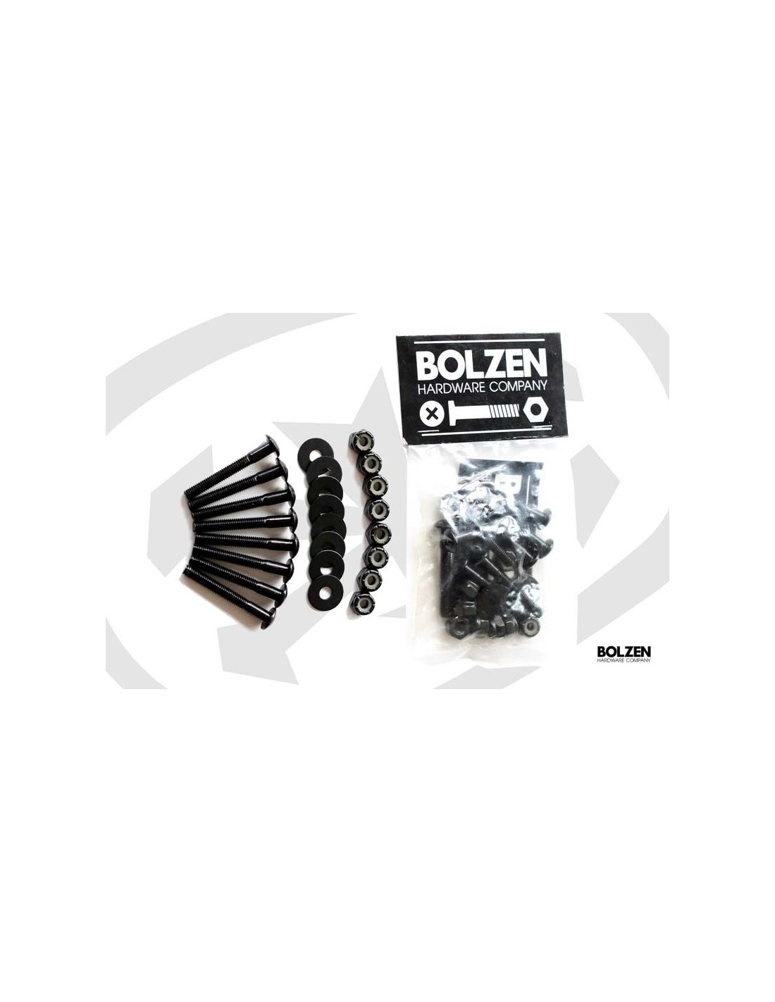 Bolzen Hardware Company screws phillips panhead 8 screws + nuts + flatwasher (only 1, 1.25, 1.5") for droptrough mounting!Made for US Skatetools - no DIN screws! Please choose size: 1“ / ca 2.5 cm 1.25“ / ca 3.2 cm 1.5“ / ca 3.8 cm 1.75“ / ca 4.45 cm 2“/ ca 5.1 cm 2.5“ / ca 6.35 cm 3“ / ca 7.6 cm All BOLZEN packs come with a sticker included!