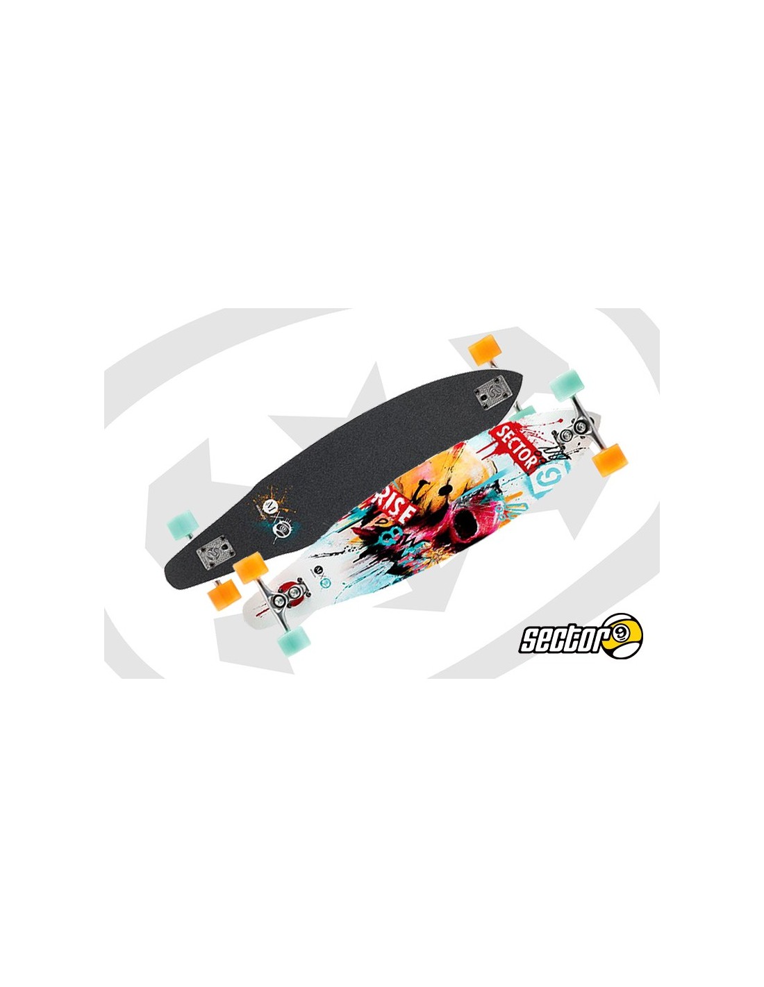 Brand: Sector 9 Model / Series: Rise & Fall Riding Style: Cruising/Carving Length: 38" / 96,52 cm Width: 9.125" / 23,17 cm Shape: Drop Thru Construction: Canadian Maple 7 Plies Wheelbase: 27.25" / 69,21 cm Concave: Mellow