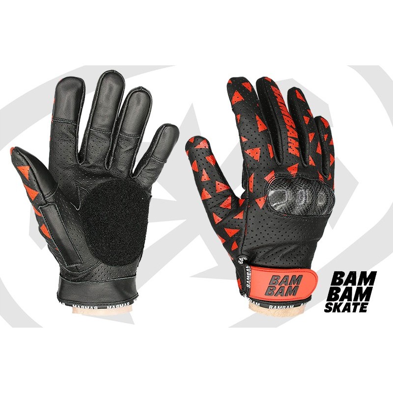 Durable, safe and looking amazing. Bam Bam Leather Racing gloves are built for the Downhill longboarder! These leather gloves are made for Downhill racing. Bam Bam's experience in downhill skateboarding made sure these gloves are the best you can get. All the sensitive points of the gloves are reinforced with additional leather pieces. The fingertips, palms, side and thumb areas are made more durable. The addition of soft pads makes them extra comfortable and the perforated areas supply fresh air. These gloves will make you feel as confident as you need to be while going downhill at high speeds.