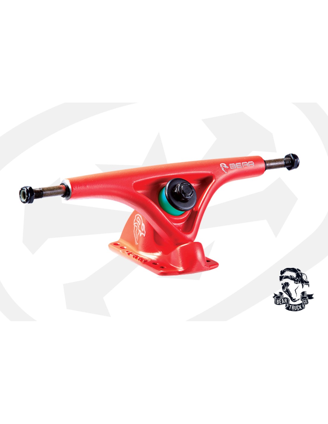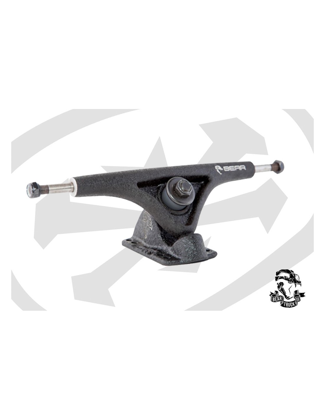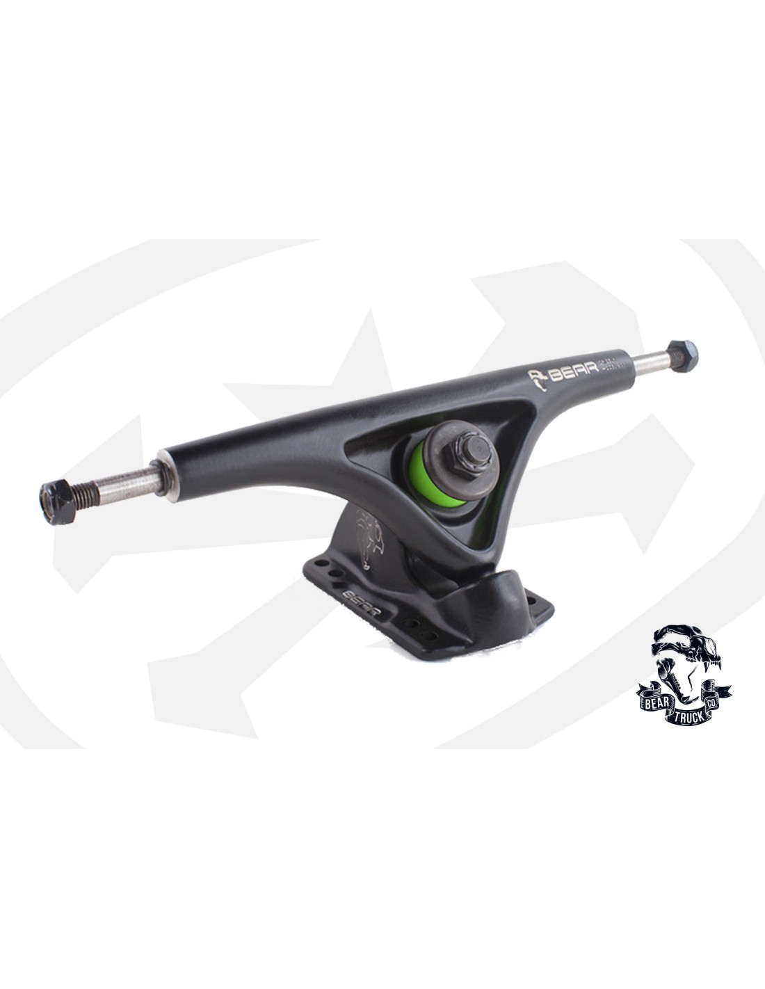 The Grizzly is our standard all round truck, available with a 52 or 40 degree baseplate. It has gone though many years of testing and refining by our professional riders and our in house engineer. We`ve kept the production quality high as well. The trucks are cast using a special casting formula to maximize strength. We`ve found that a 181mm axle width along with a 52 degree baseplate is optimum for all round longboarding. If going fast is your thing, the 40 degree baseplate will offer more stability at higher speeds, but less responsiveness at lower speed. If you`re looking for versatility, we`ve made it so that you can easily change the angle of the truck by flipping the hanger. Doing so with the 52 degree baseplate turns the truck from a general carving truck, to a more downhill oriented truck.