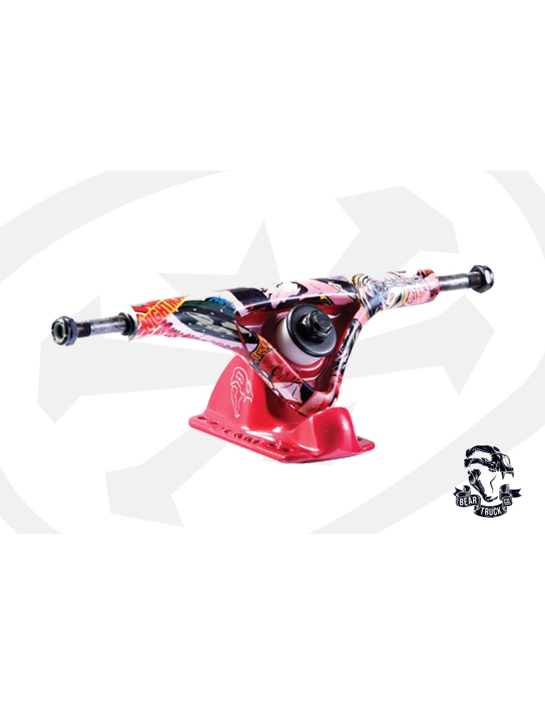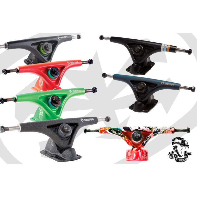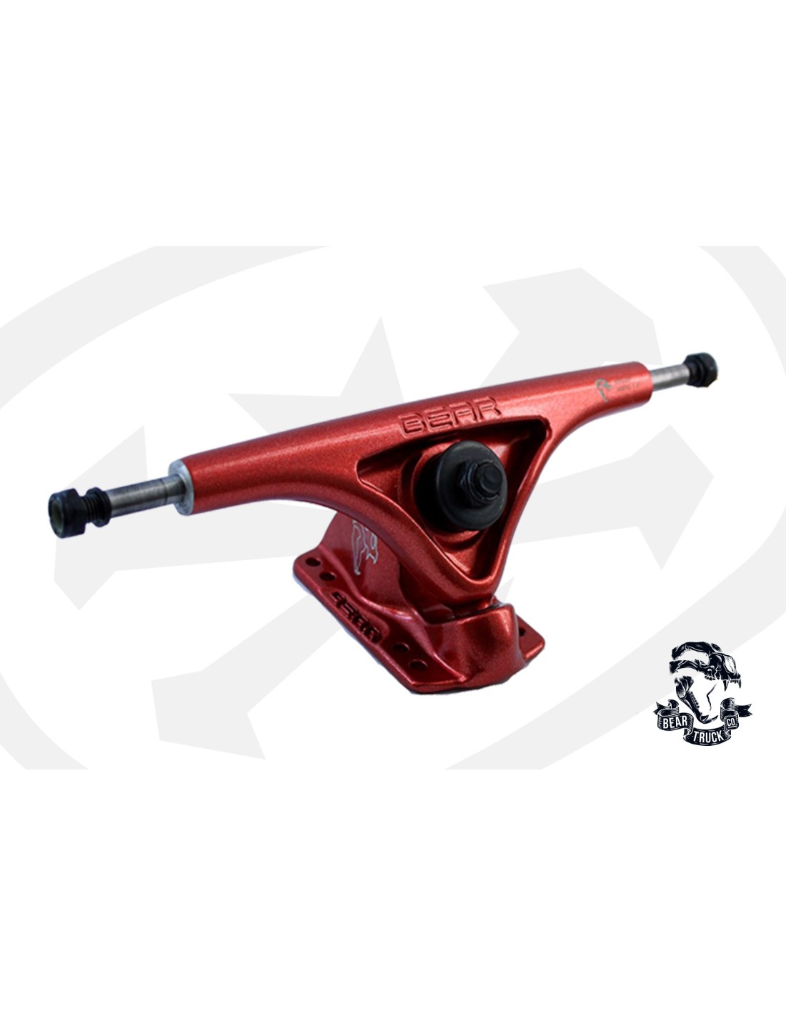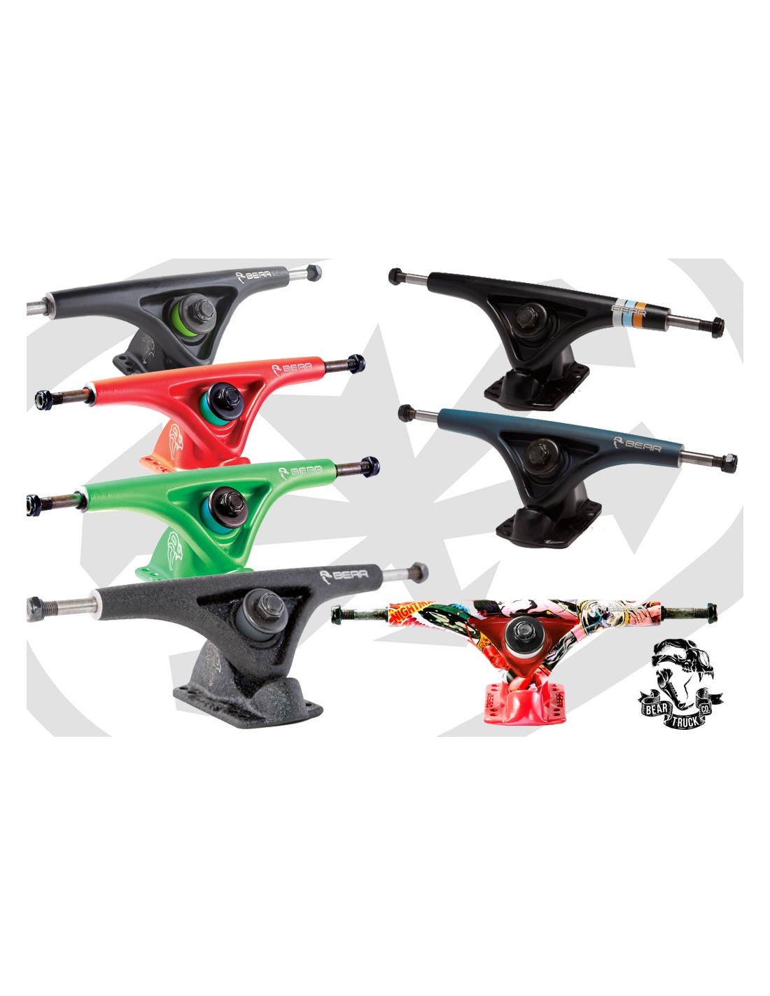 The Grizzly is our standard all round truck, available with a 52 or 40 degree baseplate. It has gone though many years of testing and refining by our professional riders and our in house engineer. We`ve kept the production quality high as well. The trucks are cast using a special casting formula to maximize strength. We`ve found that a 181mm axle width along with a 52 degree baseplate is optimum for all round longboarding. If going fast is your thing, the 40 degree baseplate will offer more stability at higher speeds, but less responsiveness at lower speed. If you`re looking for versatility, we`ve made it so that you can easily change the angle of the truck by flipping the hanger. Doing so with the 52 degree baseplate turns the truck from a general carving truck, to a more downhill oriented truck.