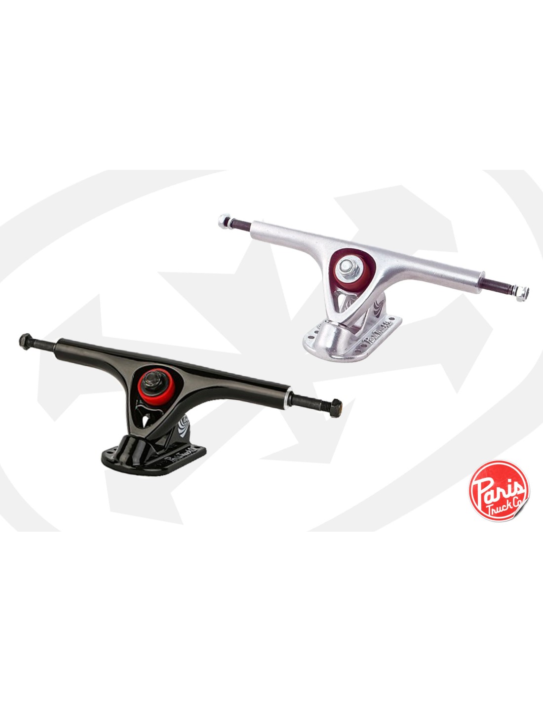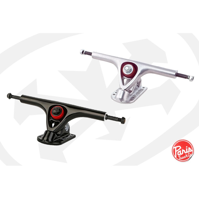 The Paris 195mm truck is your go-to downhill truck. These were built with speed in mind and that is exactly what they do well. Like all Paris Trucks, the baseplate angle is 50 degrees, which provides the perfect balance between maneuverability and stability. The 195mm hanger allows for less leverage when compared to a narrower hanger, which adds to stability and comfort at higher speeds. These trucks are ready to race out of the box! The 195s are built with 2 – 90a Divine bushings and a flat washer on top below the kingpin nuts. Get some!