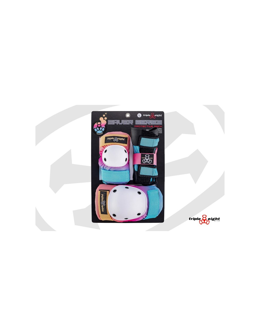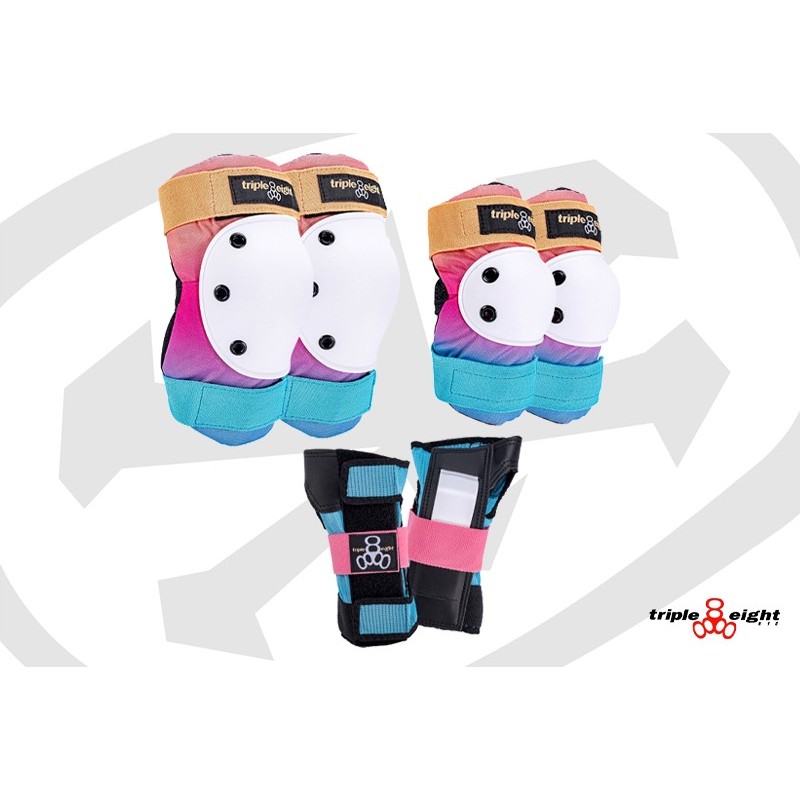 Triple Eights # 1 selling product for over 20 years Saver Color Series 3-Pack comes with:- wrist guards- knee pads- elbow pads Sizes Jr, S, M, and L