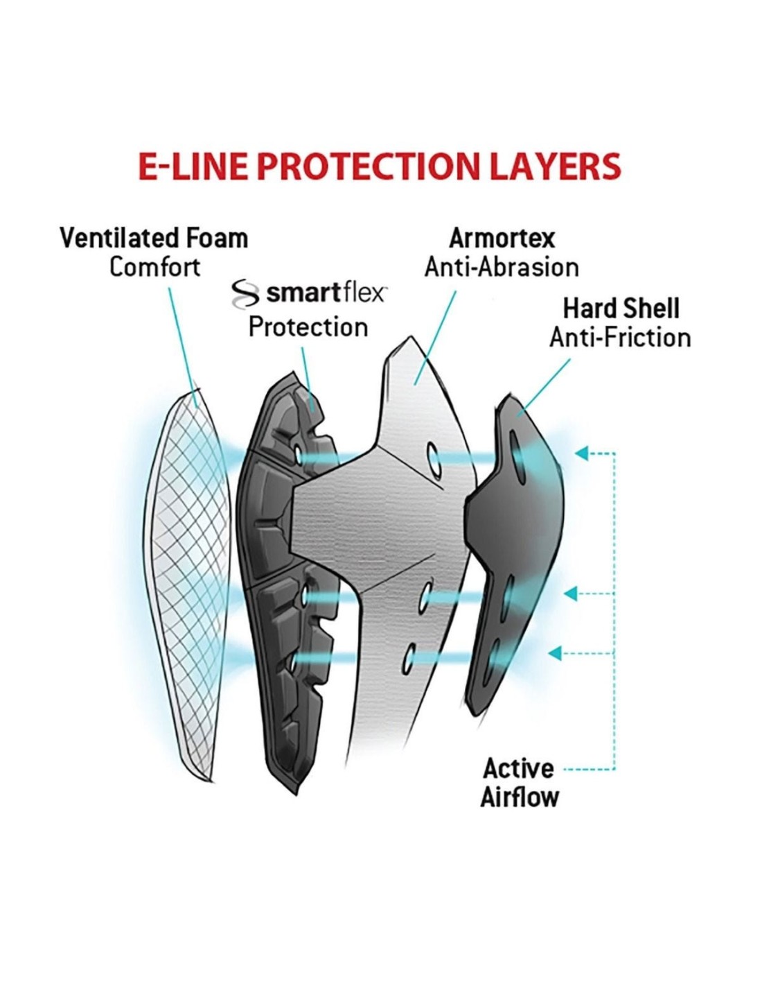 Les genouillères E-Line utilisent un système de protection à 4 couches afin d'offrir un niveau de protection optimal.