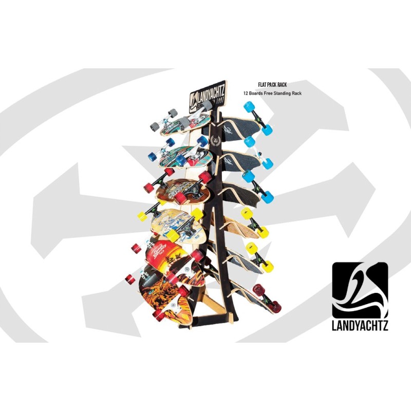 Le rack medusa 12 planches fait 175cm de haut et 65x65cm au sol.
