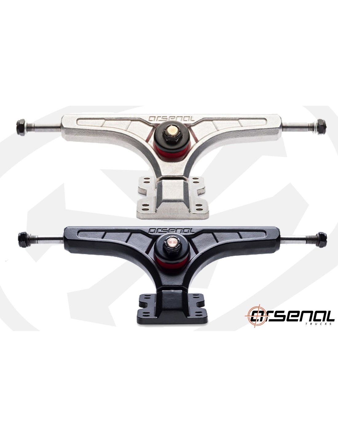 Les trucks arsenal ont été conçu pour une utilisation freeride/downhill, grâce aux bushings tall barrel ces trucks sont très plongeants vous permettant d'être plus précis dans vos slides et trajectoires.